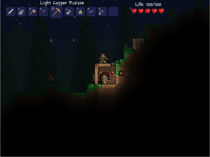 マイクラを2Dにして戦闘要素が強い感じ、と言えばざっくりしすぎてますが、多分そんな感じ。