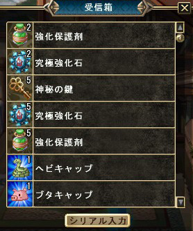 今回のレベル42特典が強化保護剤2個と究極強化石2個。
