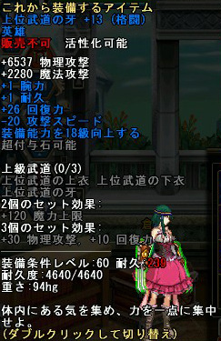 ホントはレベル59の牙を2本折ってるんですが、最高補正のレベル60のが+13になってくれたので結果オーライです。